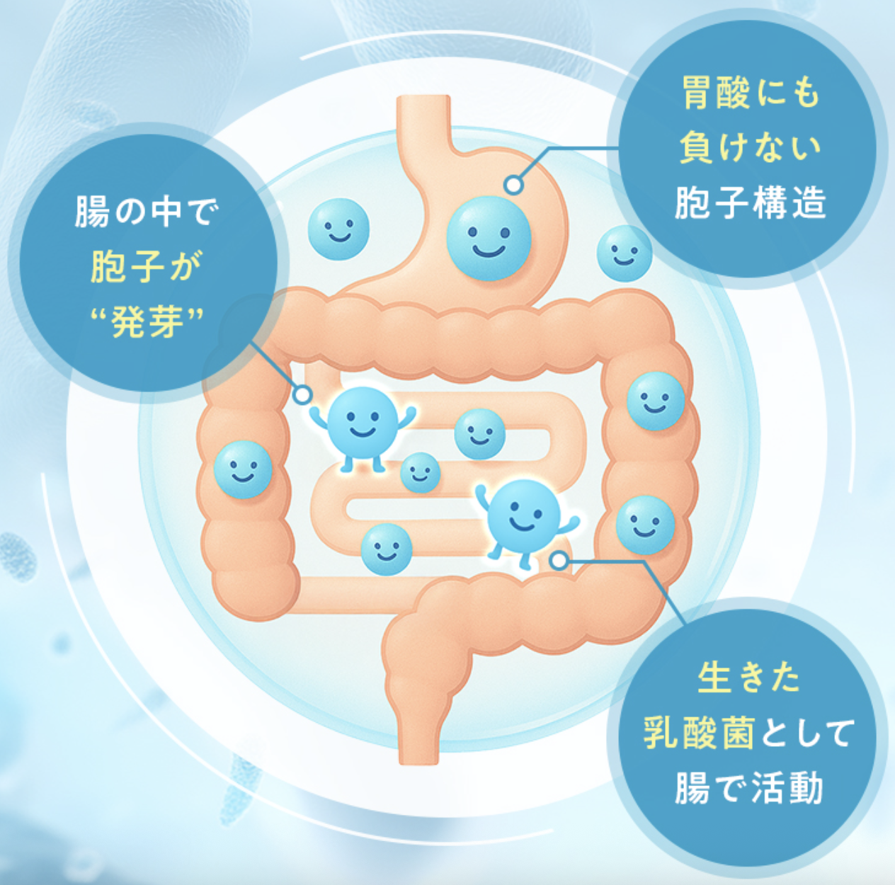 ・生きて腸まで届き、腸内で目覚めて活動を始めます